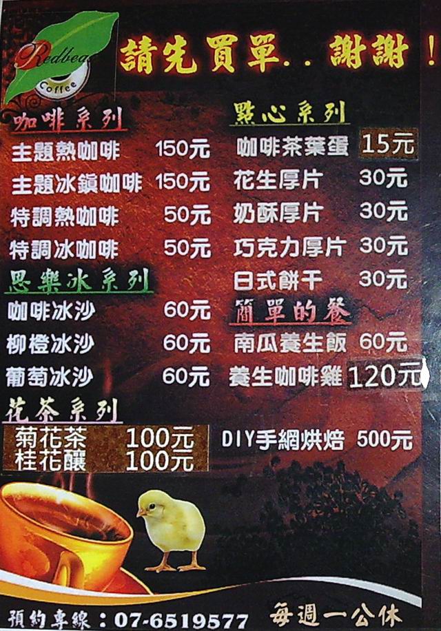 2011/2/12我們走訪了它位於大樹龍目路54號(龍目國小旁)的紅豆咖啡小屋,這兒環境清幽綠意盎然,伴著咖啡香和好聽的音樂是放鬆心情的好去處。